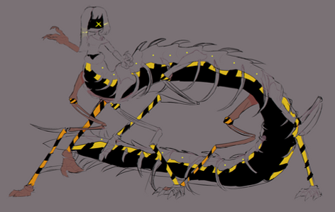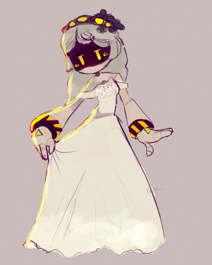 Serial Designation Q is a Murder Drone who originally was sent with a group. One day however, Q became lost and eventually was wrecked by a Pit Brigade, being destroyed. Their injuries weren't too vital, but too much for normal repair so the Absolute Solver became active. With not any Worker Drones in sight, the AS had to improvise and use nearby car parts, whatever was left, things in the area, etc. to rebuild Q. It was a success but a few things remain lost such as a lot of Q's original appearance, making their gender ambiguous. Their nanite acid tank also wasn't able to inject the acid out of the container so a scorpion-barb like open and close system was made in place.