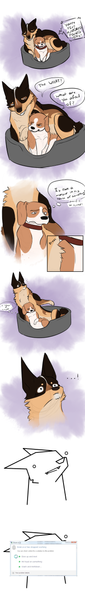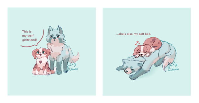 I like how (based on experience) the smaller breed of dogs tend to have bigger personality, I wanted to apply that in their dynamic.