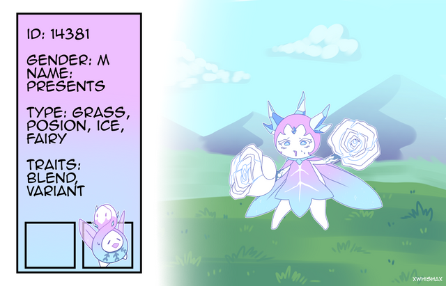 Species Note(s): She's a small fairy. Using her delicate wings, she can hover in a petite fashion. She can maneuver a soft, cool mist and form shapes with it. She can also bend ice into endless shapes by freezing the water in the air. Her blood is deep and cold, it can protrude from her body in the form of dark icicles.