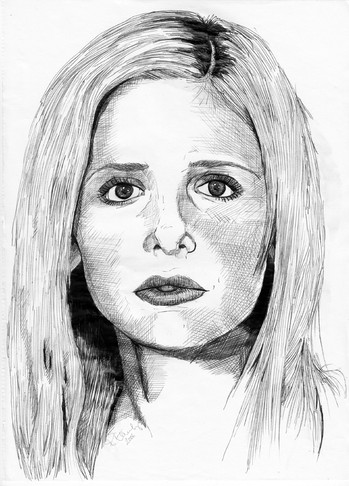 Can't miss those cheekbones, even in pencil and ink! Amazing!