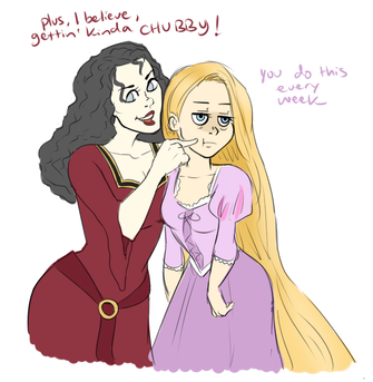 Ha ha and if Rapunzel's chubby, Mother Gothel must be edging on obese