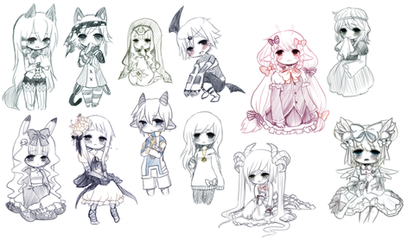 they are so simple yet so cute and fun to do >u< probably those will be added as an commission type in colored sketch>chibies>sketchy lineart ^^