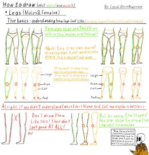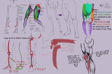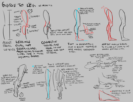 by the way the only rules are the basic shapes and muscles, other than that you can do the legs in whatever style you want (more round, more stick like, more detailed or just simple) its hard in the start but if you practice you'll get better~~