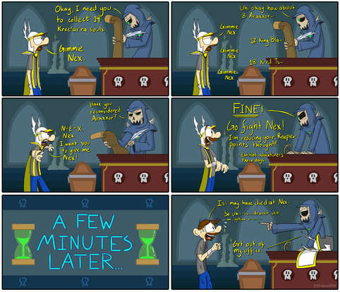 (Though, if Death is low on funds, I'm wondering where he spent all the gold from my countless deaths prior to Solak...)