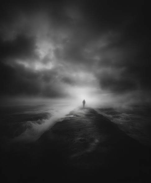 Gosto muito da composição simétrica que o P&B destaca. O céu está fantástico.