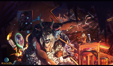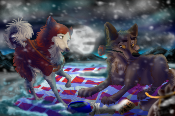 Anyway, the reindeer is pretty random. I wanted to make it look like the raccoon and the wolf were annoying it to death XD So that added a bit of humor, even if it isn't logical. I'm not really logical myself, so hey, it fits quite nicely.