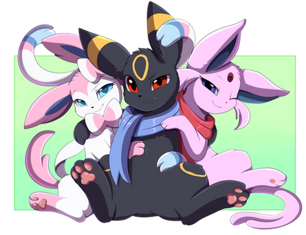#cute #flat #friends #happy #hard #oc #poke #pokemon #shading #umbreon #glaceon #eeveelution