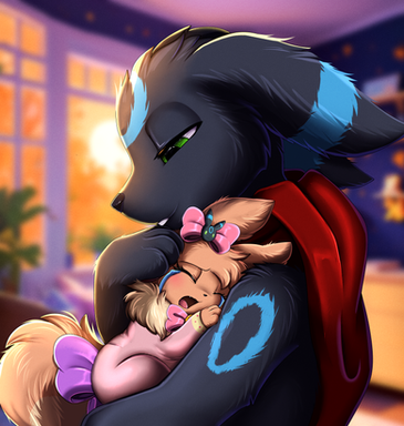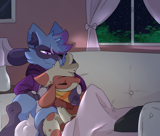 #bed #bedroom #dog #eevee #evolution #flat #hug #oc #pokemon #shading #glaceon #poke #lycanroc