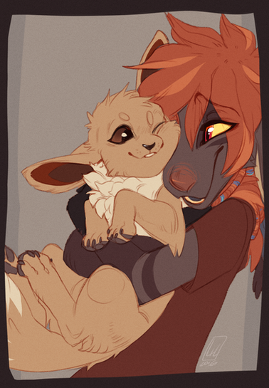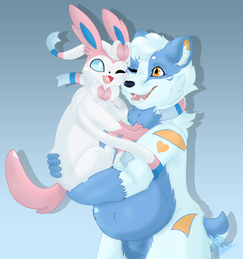 #bow #bowtie #cute #dog #eevee #feral #flat #hug #oc #poke #pokemon #shading #wolf
