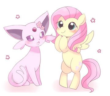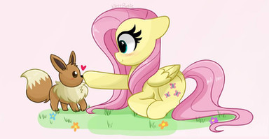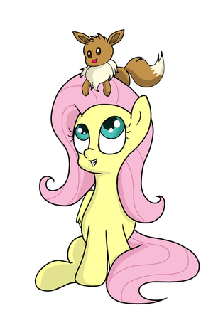 Aweee! I never knew that Fluttershy would look so cute with an Eeve! <3Β
