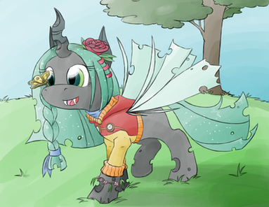 #bug #changelling #mlp #oc #plot #rose #sit #watercolor #wings #pridark #necklace