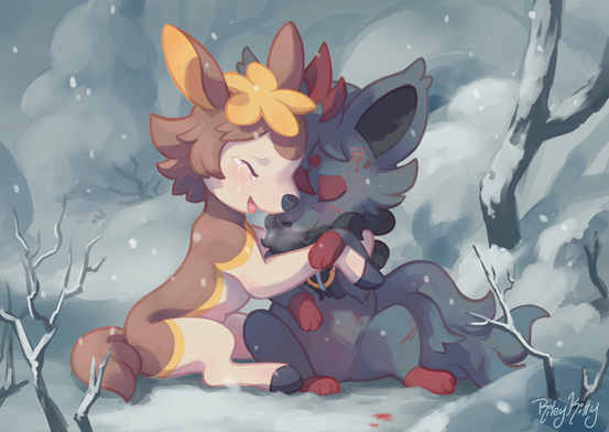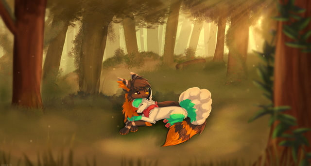 #cute #forest #hoodie #night #oc #pokemon #scarf #shading #vulpix #full #fennekin