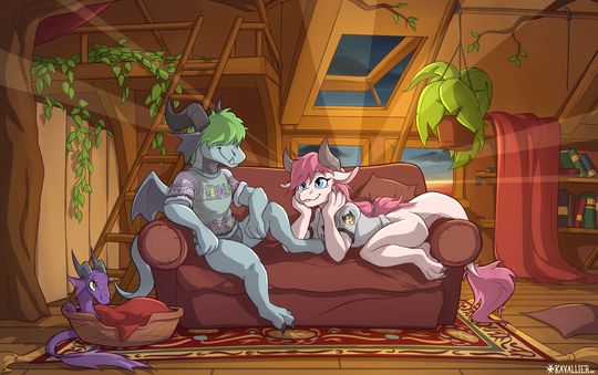 #baby #book #commission #cute #evening #female #house #library #living #male #oc #parents #reading #room #sleeping #sofa #window #gllaceon