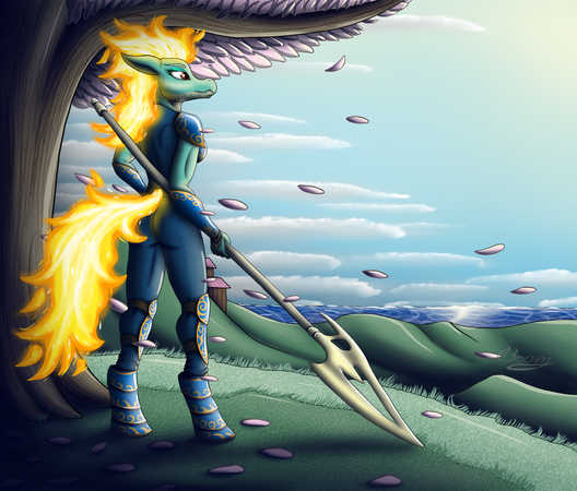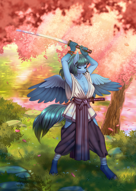 #anthro #background #blossom #complex #flowers #fuji #katana #kirin #mlp #mount #oc #pony #samurai #standing #tree #little
