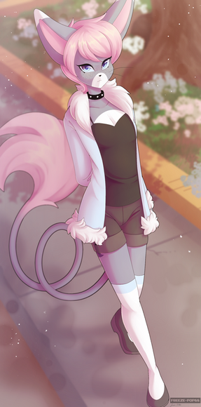 #anthro #dog #female #furry #happy #husky #oc #pink #pokeball #puppy #walking
