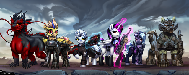 #armor #black #fallout #mlp #mountain #oc #pegasus #plasma #pony #snow #snowing #tunel #weapons #little