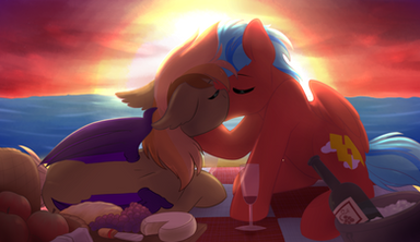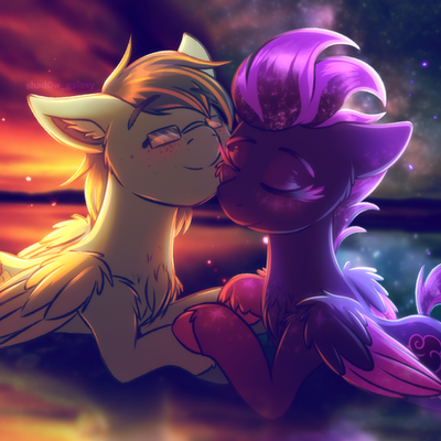 #clouds #flat #kiss #mlp #pegasus #pony #shading #sun #sunset #little