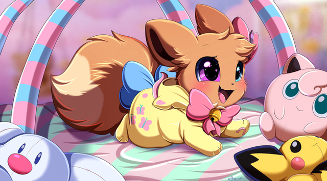 Oh my god, this is so adorable! I just love this picture. Vulpix is my favorite Pokemon along with Ninetales and this is one of the cutest picture of it.