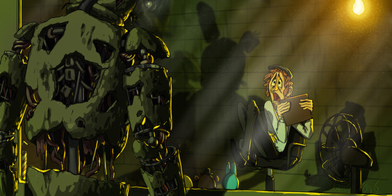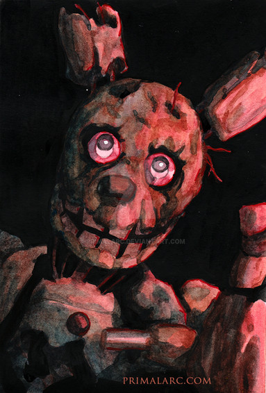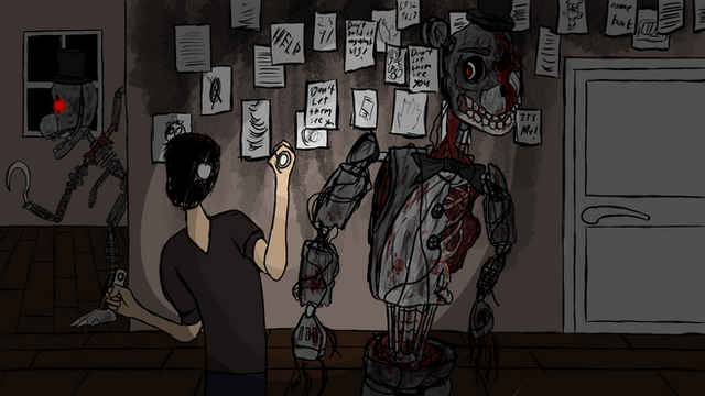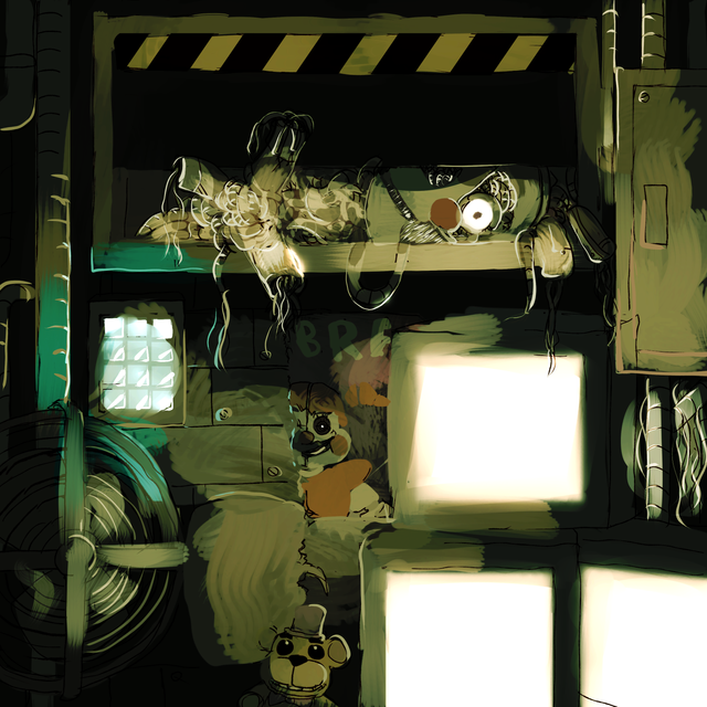 I'm late to Five Nights at Freddy's fourth anniversary, but I wanted to recapture that menacing feeling of playing the games for the very first time. None of them really came close to the first game's atmosphere again so I thought it would be fun to try and paint it.