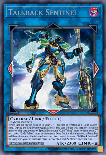 You can Special Summon 1 Level 4 or lower Cyberse monster from your hand, and if you do, immediately Link Summon 1 Link-3 “Code Talker” Link Monster using this card and the monster Special Summoned this way as material. You can only use this effect of “Storm Coder” once per turn.