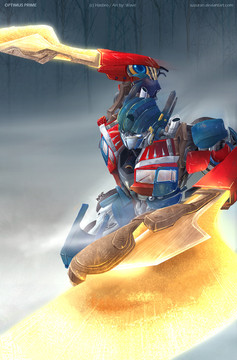 The fist of many planned movie Transformers.Optimus running to battle / rescue