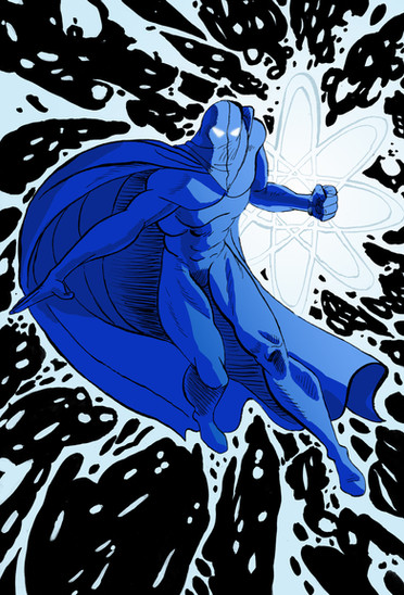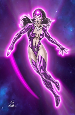 I made a separate pic with the stars after I finished the main pic. I copied a merged version of the main pic and added it as a layer to the stars picture. I turned that layer B&W, reversed the brightness and turned it into a multiply layer. That way, the parts that were black on the pic were see-through and faded into the light parts. After adjusting all that, I copied it a merged version that back to the Entity pic, turned it into a brighten layer. I went to the layer with the flat colors, magic wanded the cape, reversed the selection and used that to trim all non-cape parts from the stars layer. Additional trimming was done, but that's the basics on how I did it. Not that anyone asked, BUT STILL