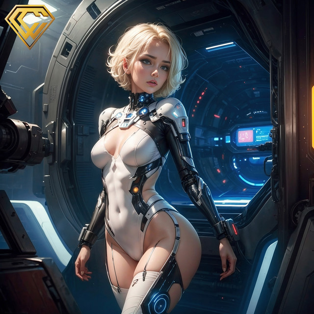 #android #blueeyes #bodysuit #futuristic #girl #mecha #mechanical #spaceship #spacestation #whitehair #woman