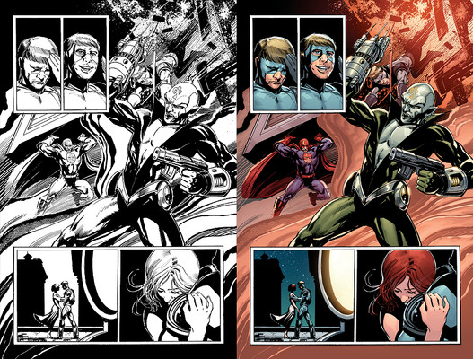 Here the colorist made a good choice in how to paint Peeg, I wanted a semirealistic view of Amanda Conner's peeg while she battles livewire, Da bomb, and Metallo and Silver Banshee.Related content