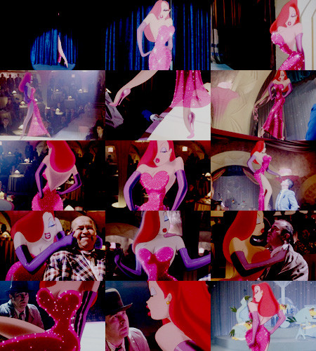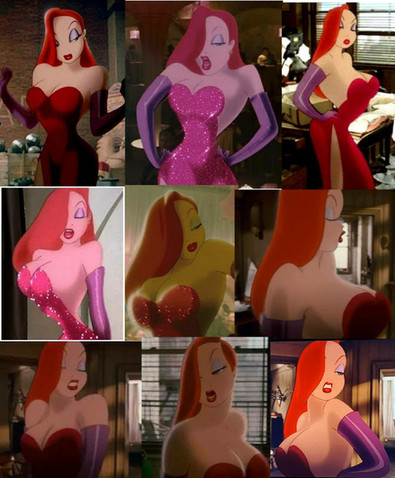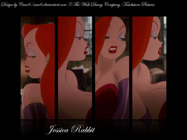 In the novel, Jessica was an immoral, up-and-coming star, and former comic character with whom her estranged husband (comic strip star Roger Rabbit) became obsessed. She is re-imagined in the film as a sultry, but moral, cartoon singer at a Los Angeles supper club called The Ink and Paint Club. She is one of several suspects in the framing of her husband, who is a famous cartoon star accused of murder. She is voiced by Kathleen Turner, who was uncredited for her role. Amy Irving was cast to sing "Why Don't You Do Right?" (a blues song made famous by Peggy Lee) for Jessica's first scene in the movie. According to animation director Richard Williams, other than being a beautiful female human toon temptress, she deeply loves her husband Roger. She even calls him her "honey-bunny" and "darling." She claims that he makes her laugh, is a better lover than a driver and that he's "better than Goofy" after Roger attempts to save her from Judge Doom and the Toon Patrol. As proof of her love, she tells Eddie that she'll pay any price for Roger and she even helps prove him innocent by helping in the investigation.Even though she's a human Toon, she is shown to have a few of the comedic cartoon antics typical of other Toons. One such example was her cleavage having a hammerspace ability, as one of the weasels searched her (with obvious perverted intent) for Marvin Acme's last will and testament, only to comically get his hand caught in a bear trap, with Valiant commenting on the event with a pun ("Nice booby trap"). Another could be her restrained "wild take" (as she shouts, "Oh, my God, It's DIP!") seeing Judge Doom's scheme involving the Dip, while a subtle effect was added by animator Russell Hall: The bounce of Jessica's bosom was reversed from that of a real woman so that it would bounce up when a real woman's breasts bounce down and vice versa. Furthermore, when she blows kisses (as seen to Eddie in one scene) the lip-kisses are also done in a cartoonish style.[8]