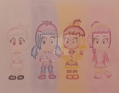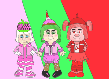If I'd honestly had to headcanon what candy themes these gals would be, it would be Strawberry Ice Cream or Ice Cream Sandwiches (Nougestia), Mint Gum (Sticky), Cake Batter/Butterstotch (Torvald) and Blueberry Pie (Citrusella)