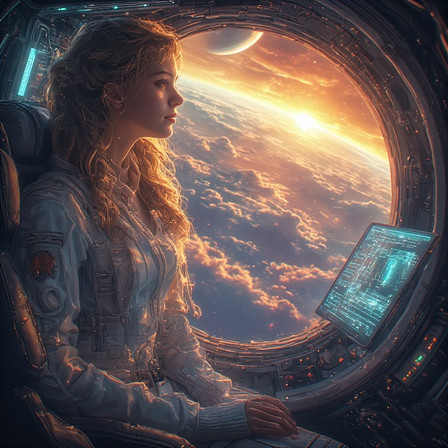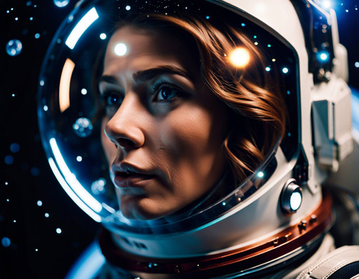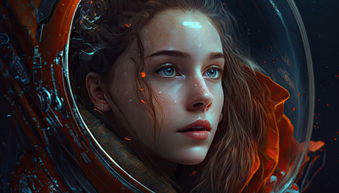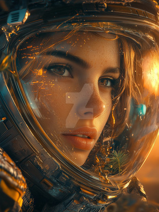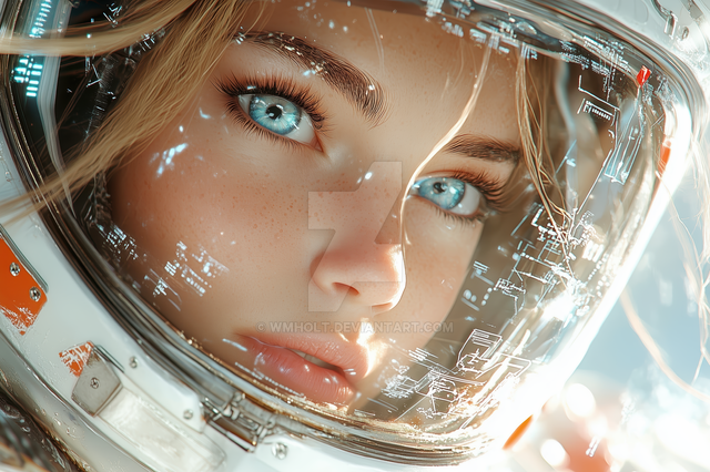 #digitalart #portrait #beauty #scifi #astronaut #drama #space #surreal #portraitgirl #ai #female #helmet #redhair #reflection #woman #aiart