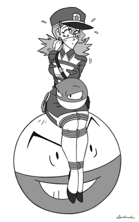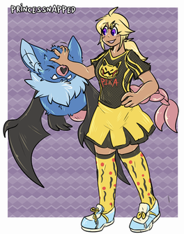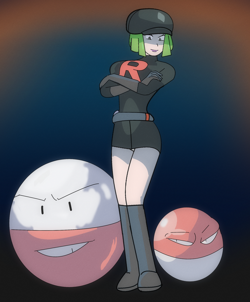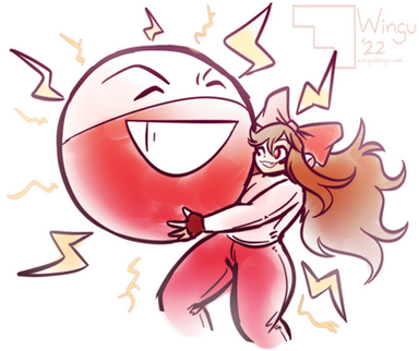 an Electrode gijinka character with an actual Electrode and Voltorb!