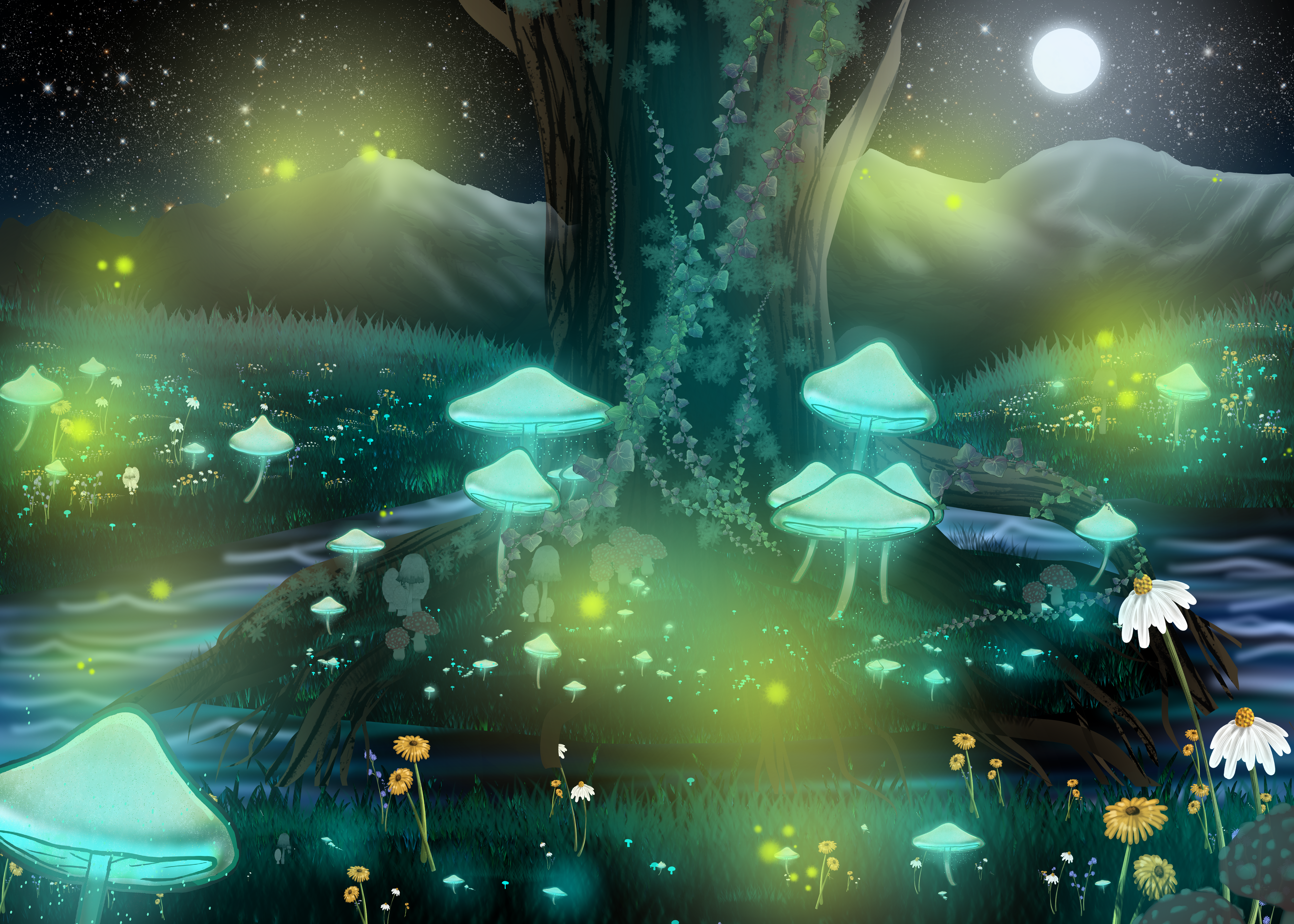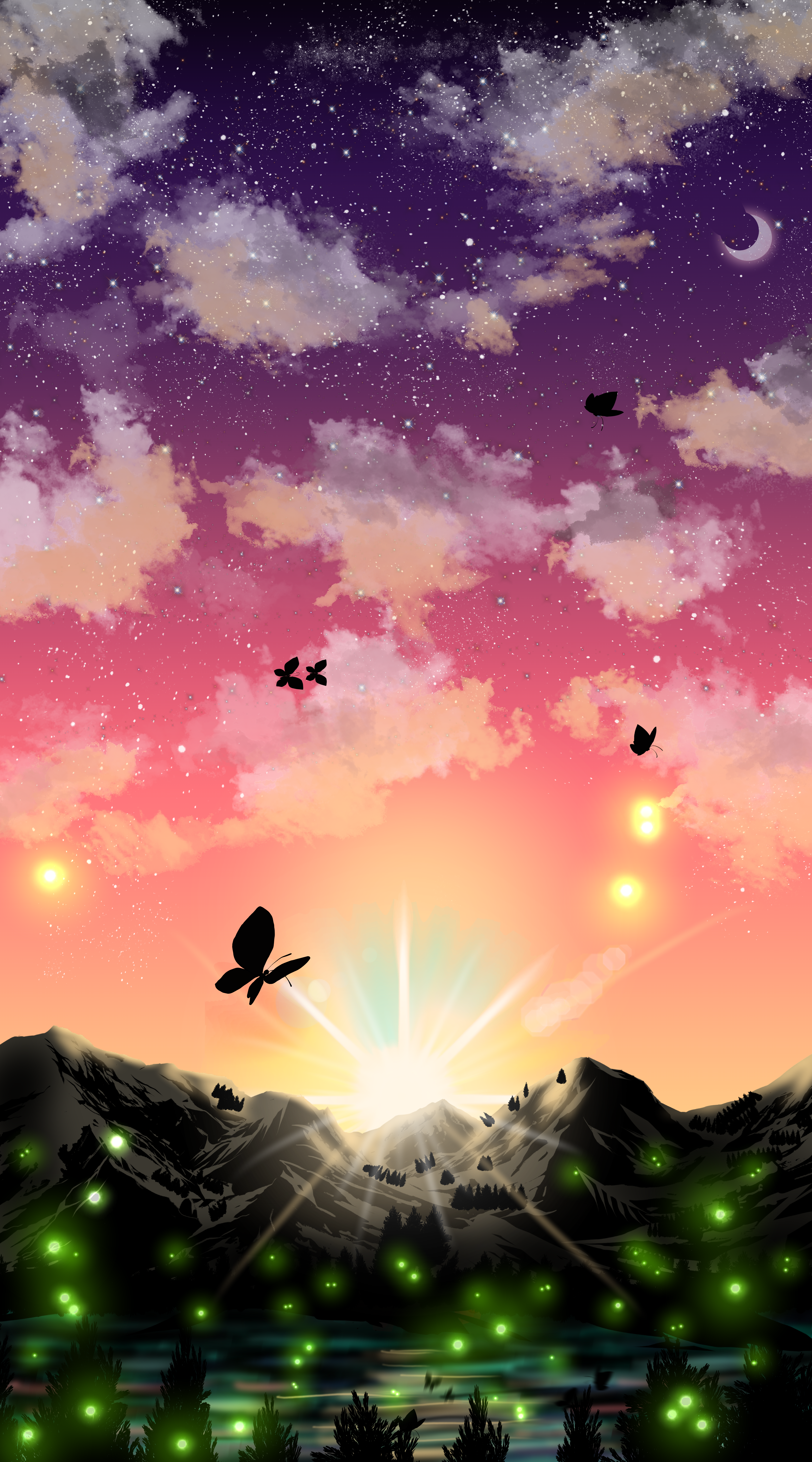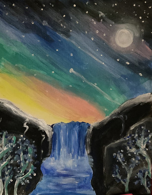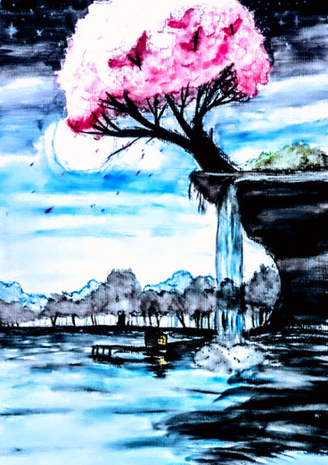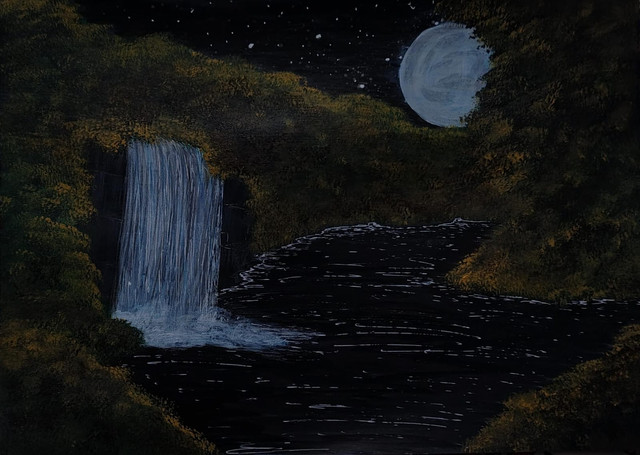 #background #dreamscape #fantasylandscape #junglescene #moonlight #originalartwork #supermoon #surreallandscape #traditionalart #watercolorpencils #romanticart #mysticnature #landscapeillustration #atmosphericart #waterfallart