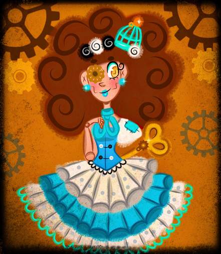 Love the character design and the contrast with the vibrant colors against the dark browns.