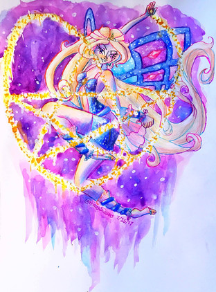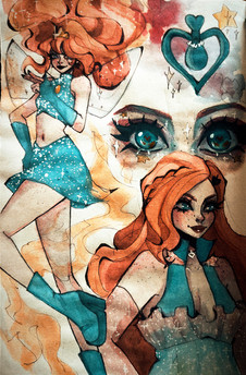 Oh, love the colors~ They're so pretty n_n Also, that ankle scares me... I fear it's going to snap if she stays like that too long.