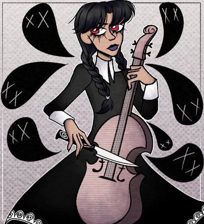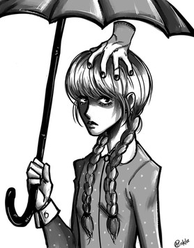 My roommate is goth and dressed up as like a sexy Wednesday for Halloween so I drew this for her!