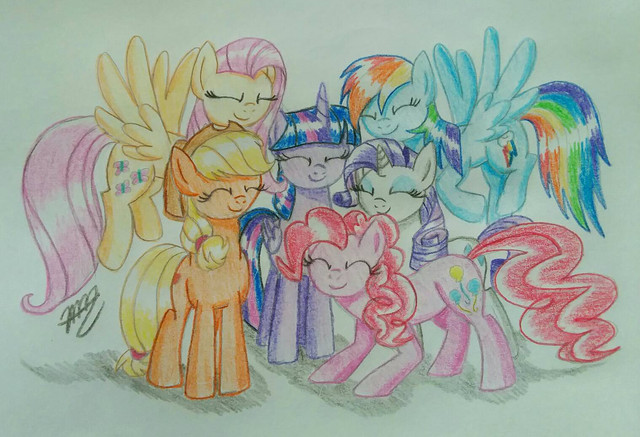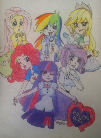 Holycrapthistookmesoooolong!!! That's like, at least 5 hours of work right there! But I think it turned out pretty great!I've never done a group shot of the Canterlot High friends before!