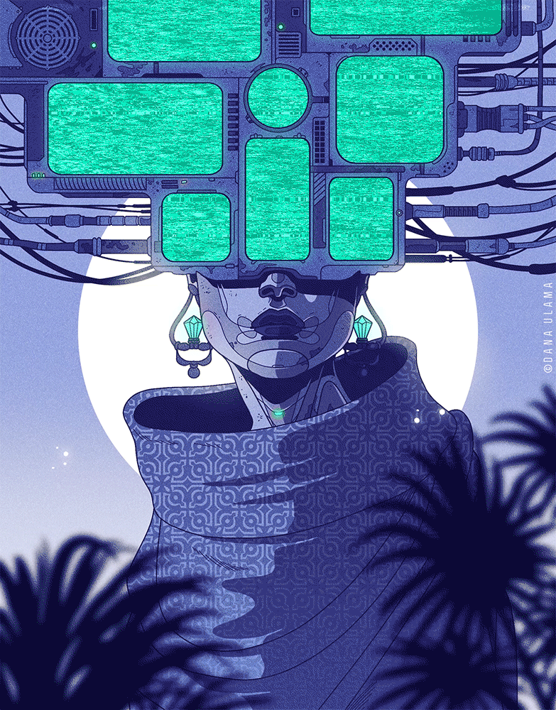 This was done for a 'colorblind' challenge where I painted in Photoshop with my screen set to greyscale mode so I didn't really know what colors I was choosing. It turned out pretty nicely and then I added some finishing touches like the circuitry in the background.Does anyone know other similar fun challenges or trends they could recommend? Please let me know, I would love to try some!