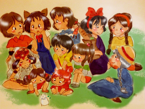 The whole group of Studio Gibli girls. I would love to see these ladies compared to the Disney Princesses.From top left to bottom right