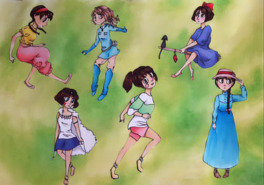 Nausicaa, Haru, Fio, San, Arriety, Sophie, Kiki, Terru/ Tehanu, Shita/Lahita to al ul Laputa, Satsuki, Chihiro/Sen, Mei, Ponyo/ Burnhilda, and Setsuko.