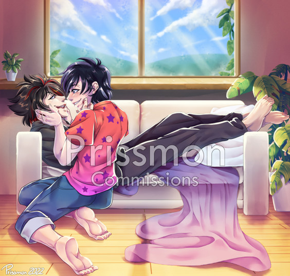 Cell-Shaded Commission for lemonyzedHis OC Raveous and Adaman