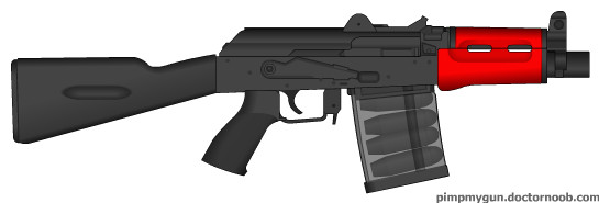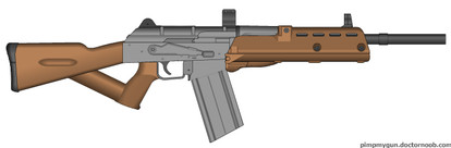 A simple rifle a made using Pimp My Gun.Its a mixture of all sort of guns, took about 15 minutes to find the adecuate parts, which was quite a lot taking into account it normaly takes about 5, but it seems it worth it.