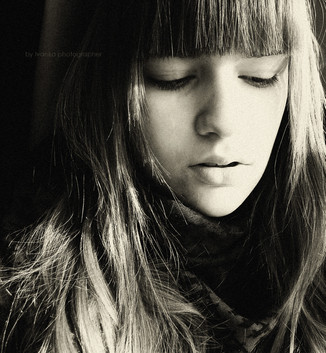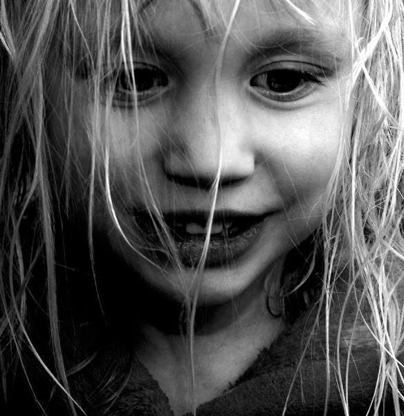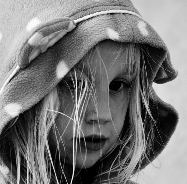 Love the black and white color and the shadows. And the little girl is absolutely pretty, her expression is amazing...