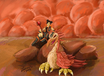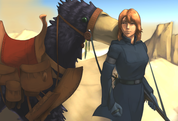 Myriel and Grimshaw were left alone on the planet after their humiliating defeat against Miss Fortune. Grimshaw never truly recovered from the serious brain injury which Miss Fortune dealt to him and suffers from chronic insomnia and seizures. Despite Myriel's determination to get back into the tournament, opportunity after opportunity continously slipped by her to escape, leaving her and grimshaw alone when the tournament winner was declared and everyone abandoned it. At points of near death, Myriel slowly began to lose her mind and her memories of the past soon washed away in the dusty storms that pounded the landscape. Her personality never changed, however and her love and care for Grimshaw grew into a deep bond between girl and dragon.Scavenging the desolate landscapes Myriel and Grimshaw sustained themselves on the meat of the dead and abandoned wrecks that dotted the landscape. Although they lost everything on that fateful day, the two of them pressed on to survive. Together they grew stronger. Together they survived the sunblasted land and made it their home, always looking to the star in hopes of one day, someone will come for them.