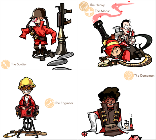 Scout is funny because he's a mouthy, mean little bastard. Also, the Heavy hop is adorable.