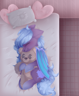 sad little roxy sleeping and dreaming about her loved onelittle plushy is the oc of