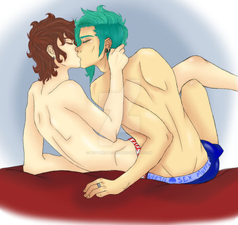 Cute pic of Adam and Steven going to bed. I had a base reference for this one too, but it came from facebook and there was no signature on it. Whoever inspired me for the body proportions is freakin amazing!!!Characters are mine from a book I am writing called Problematic Romance~