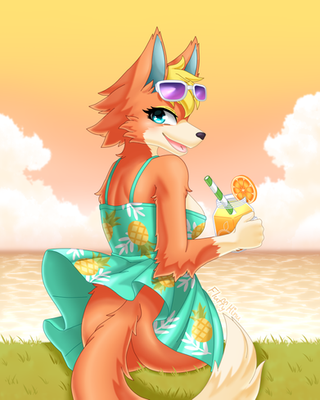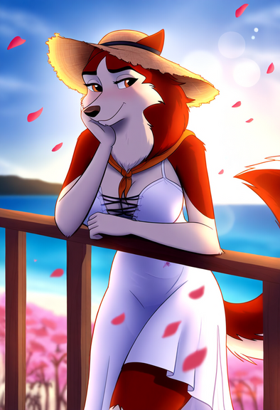 #anthro #background #beach #canid #canine #clothed #clothing #dress #female #flowers #hi_res #mammal #ocean #panties #sea #seaside #sfw #sky #sunset #video_games #water #whitney #wold #wolf #animal_crossing #looking_at_viewer #looking_back #detailed_background #whitney_animal_crossing