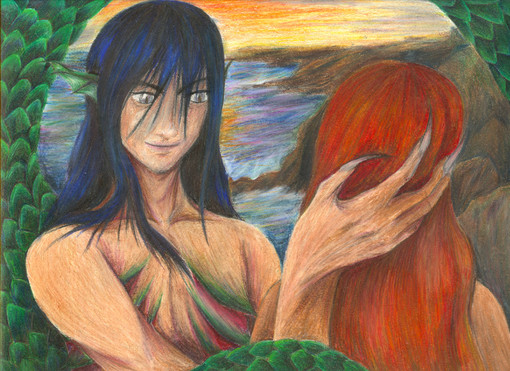 The water is terrible, and I know it. Also my blending and proportions could use some work, as well as the male anatomy. I'm really only quite fond of his face and ear, and the scales on his tail took me a good portion of 2 hours to do. I'm never doing scales again. Ever. -_-