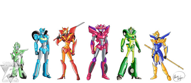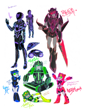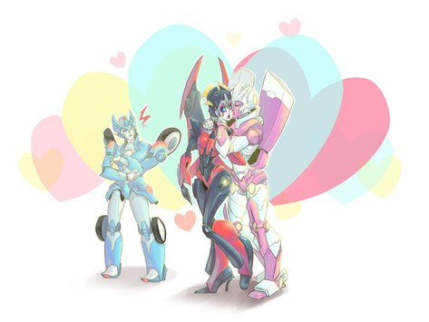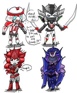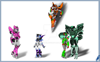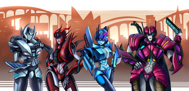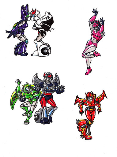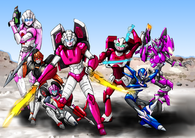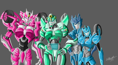 Very cute work! I recognize Windblade, Arcee, & Chromia, but who is the purple & yellow femme?